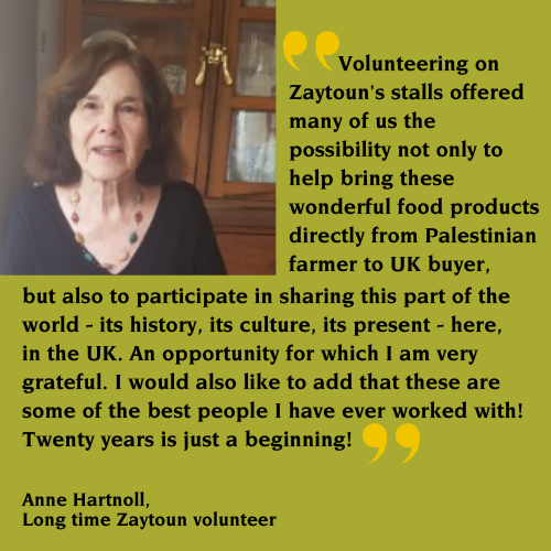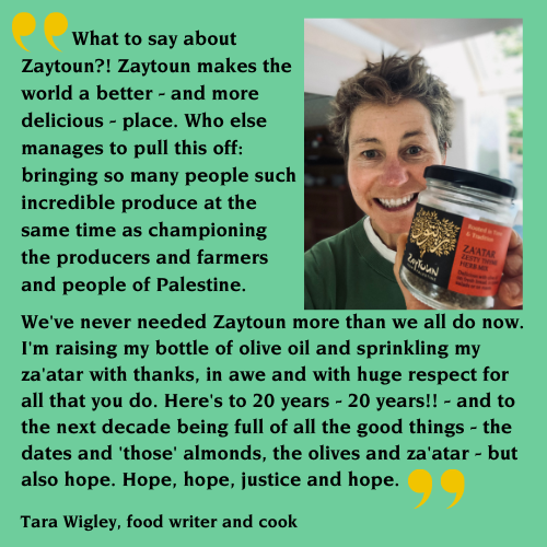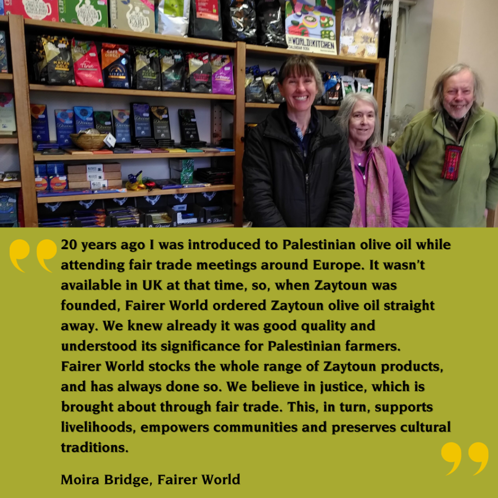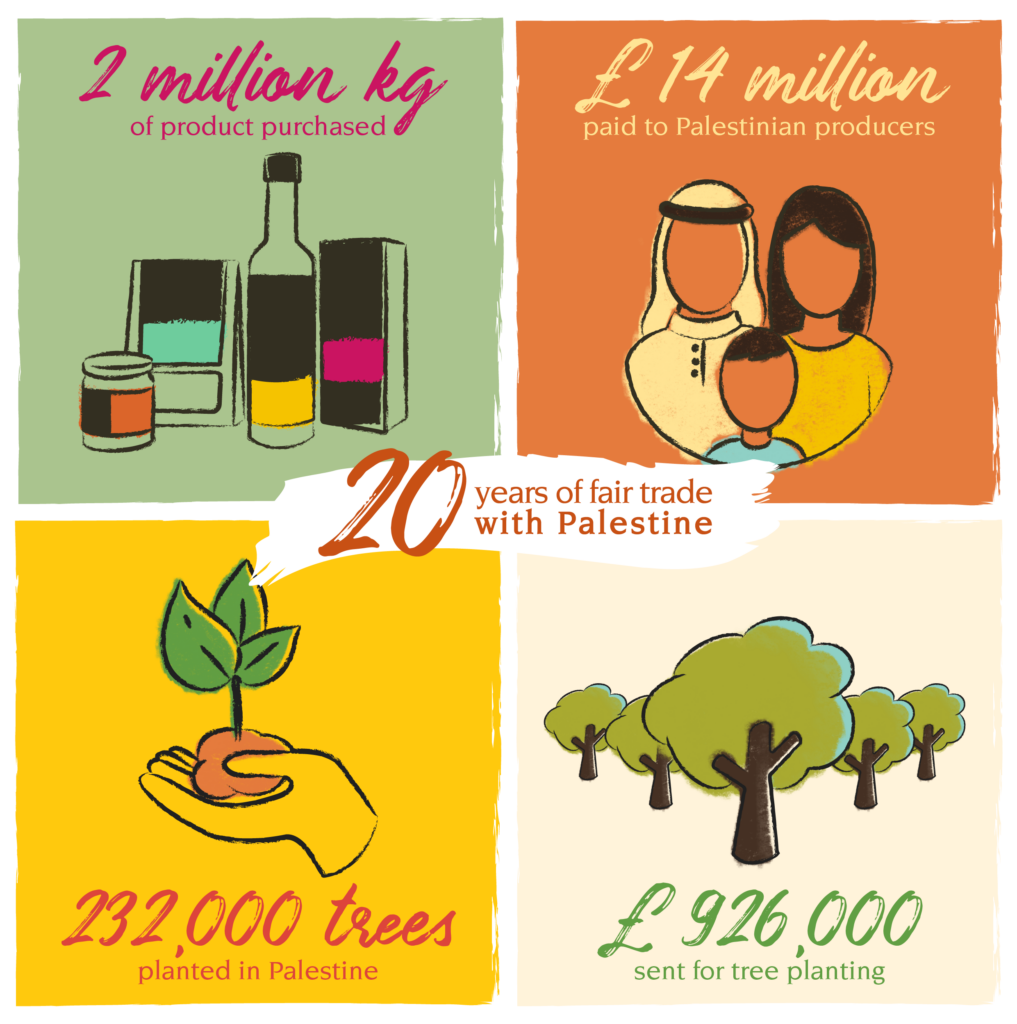 We are proud to mark 20 years of supporting producers in Palestine through fair trade. While it’s a time for reflection rather than celebration, we want to express our deepest gratitude to the individuals, companies, and organisations whose unwavering support has been vital to our mission. Explore a collection of stories and perspectives from those who have journeyed with us, highlighting the impact of our collective efforts and the strength of our community.