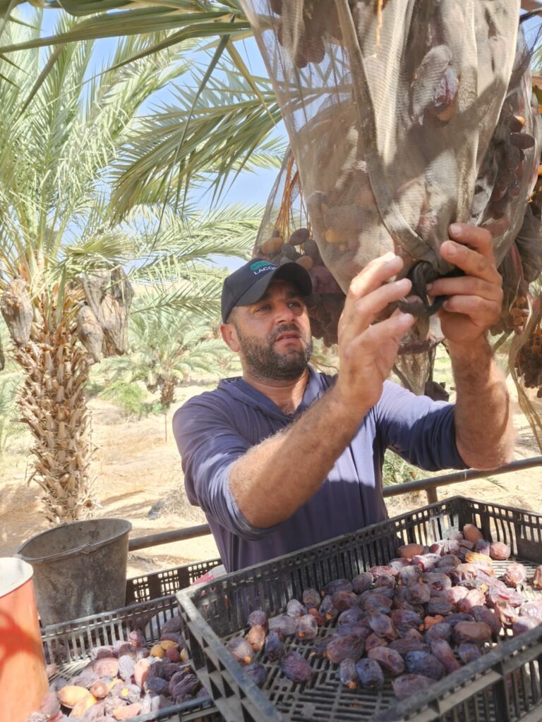 The Medjoul date season is now in full swing in and around Jericho and other parts of the Palestinian Jordan Valley. The fruits have reached the ‘tamar’ stage where they turn from yellow to amber to a deep brown colour, signalling that they are ready to be harvested.