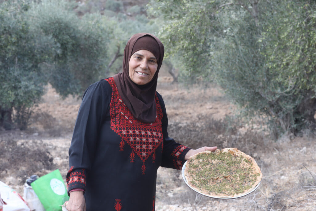 Doha Asous, pictured below, is a farmer in Burin. She has hosted volunteers with the Protective Presence team for many years. A member of The Slow Food Movement Palestine, she farms her family land in the way her ancestors have done for generations.